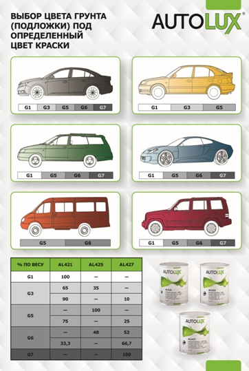Конечно, в основном все маляры используют средне серые грунты- наполнители, и для обычных металликов такой тон подходит. Многие производители ЛКМ дают рекомендации под какие цвета какой тон использовать, Autolux не исключение.